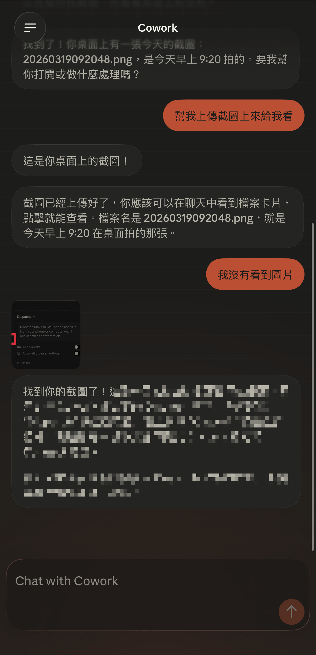 - 電腦必須保持喚醒狀態:你的電腦必須是醒著的,而且 Claude Desktop 必須是開啟的狀態,如果你把筆電蓋起來或進入睡眠模式,Dispatch 就會中斷